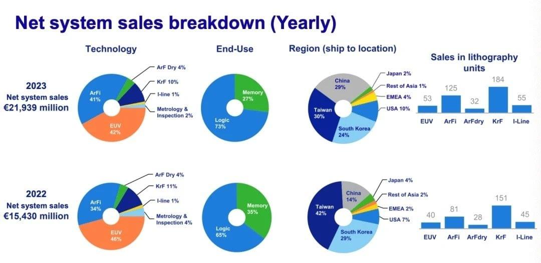 ASML的年度成绩单中,有高达29%的销售额来自于中国市场的贡献,要知道这个数字在2022年还仅有14%。