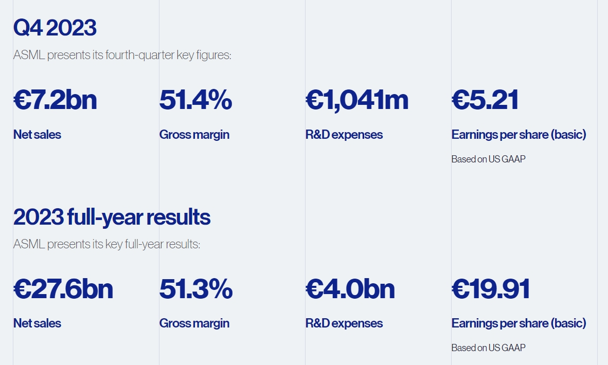 荷兰光刻机巨头ASML(阿斯麦)于1月24日发布了2023年第四季度及其全年财报,业绩好得令人羡慕。
