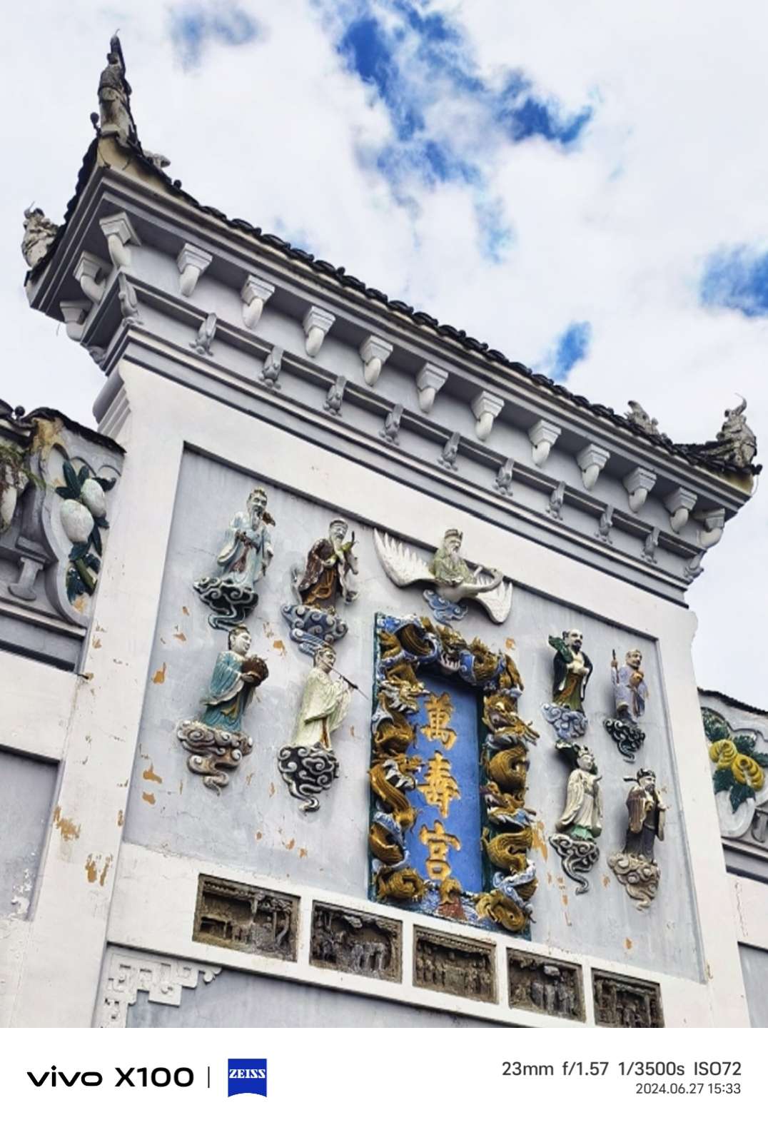 古镇的建筑依山就势,古镇内设计精巧、工艺精湛的明清古建筑交错密布:祠宇林立,建有9寺、8庙、5阁、2祠、1院、1宫,近30 座庙宇祠堂,其中不少至今保存完整·这批建筑工艺精妙绝伦,蕴合着许多神话传说和浓郁的地方特色。